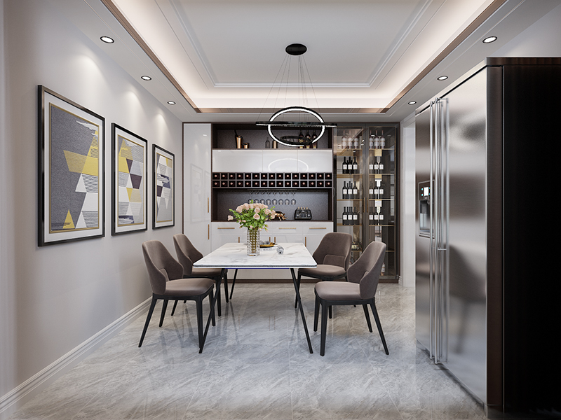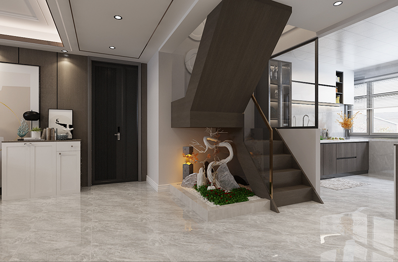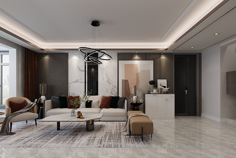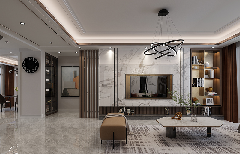 設想理念:此計劃設想與客戶屢次相同告竣分歧,色系接納胡桃木色系與石材的碰撞告竣輕奢結果,空間規劃斗膽。矯捷應用各類材質夾雜碰撞,結果奇佳。