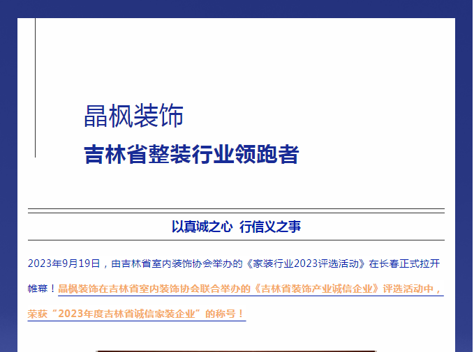 晶楓裝飾而今已營造了江湖47家束裝策略盟友火伴, 內外與176家二線品牌標志商建定策略協調!品質市場均衡,工坊集采!為泛博春城建設方造成 值得買更高的、思想品質好些、更便利性短時間的“一趟式”室內裝修休會!在以貨物上風最為的點合作項目力的跟本上,晶楓還將續展晉升制度束裝處事思想品質,讓顧客真的費神杠桿原理、無擔憂。